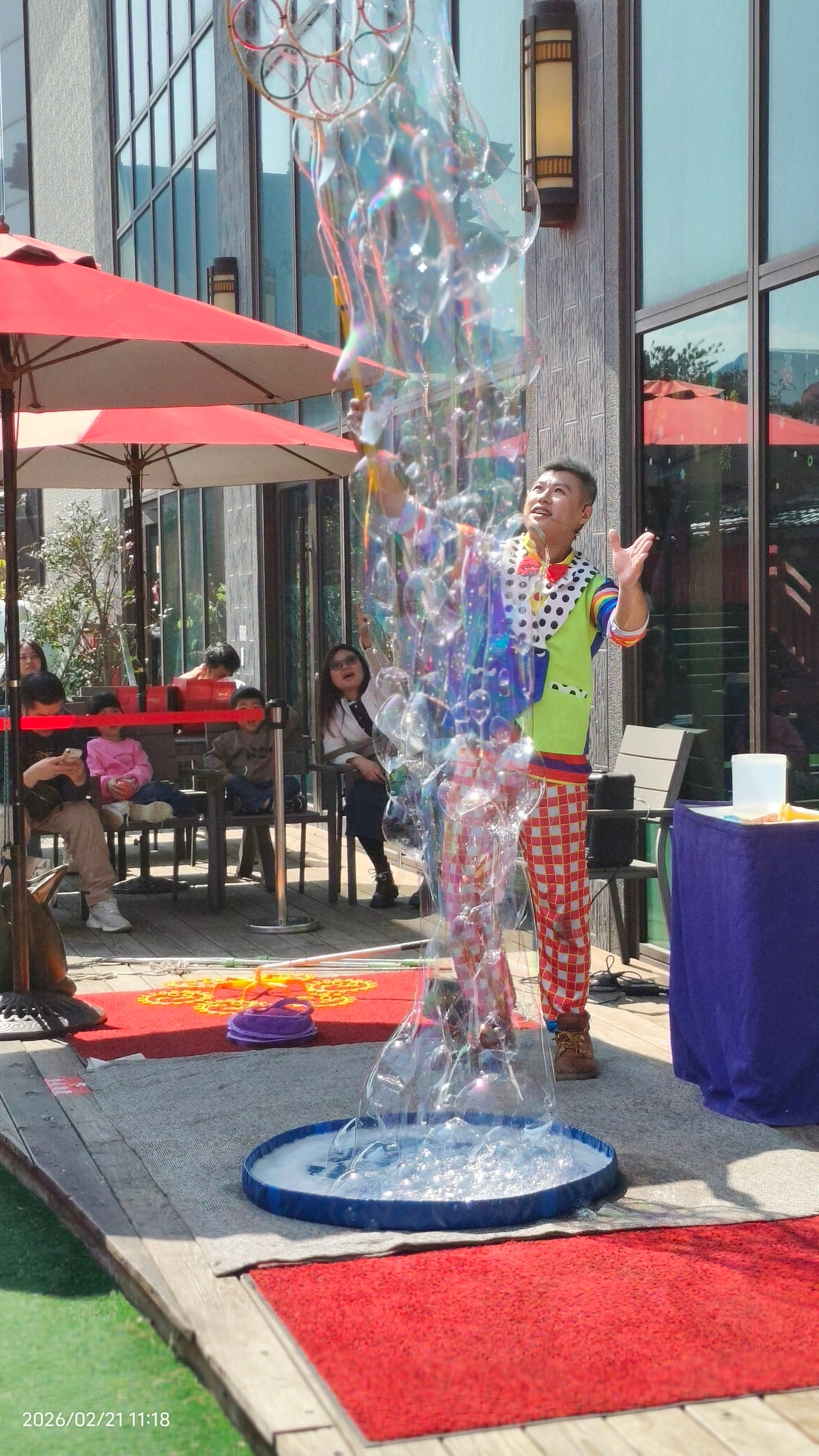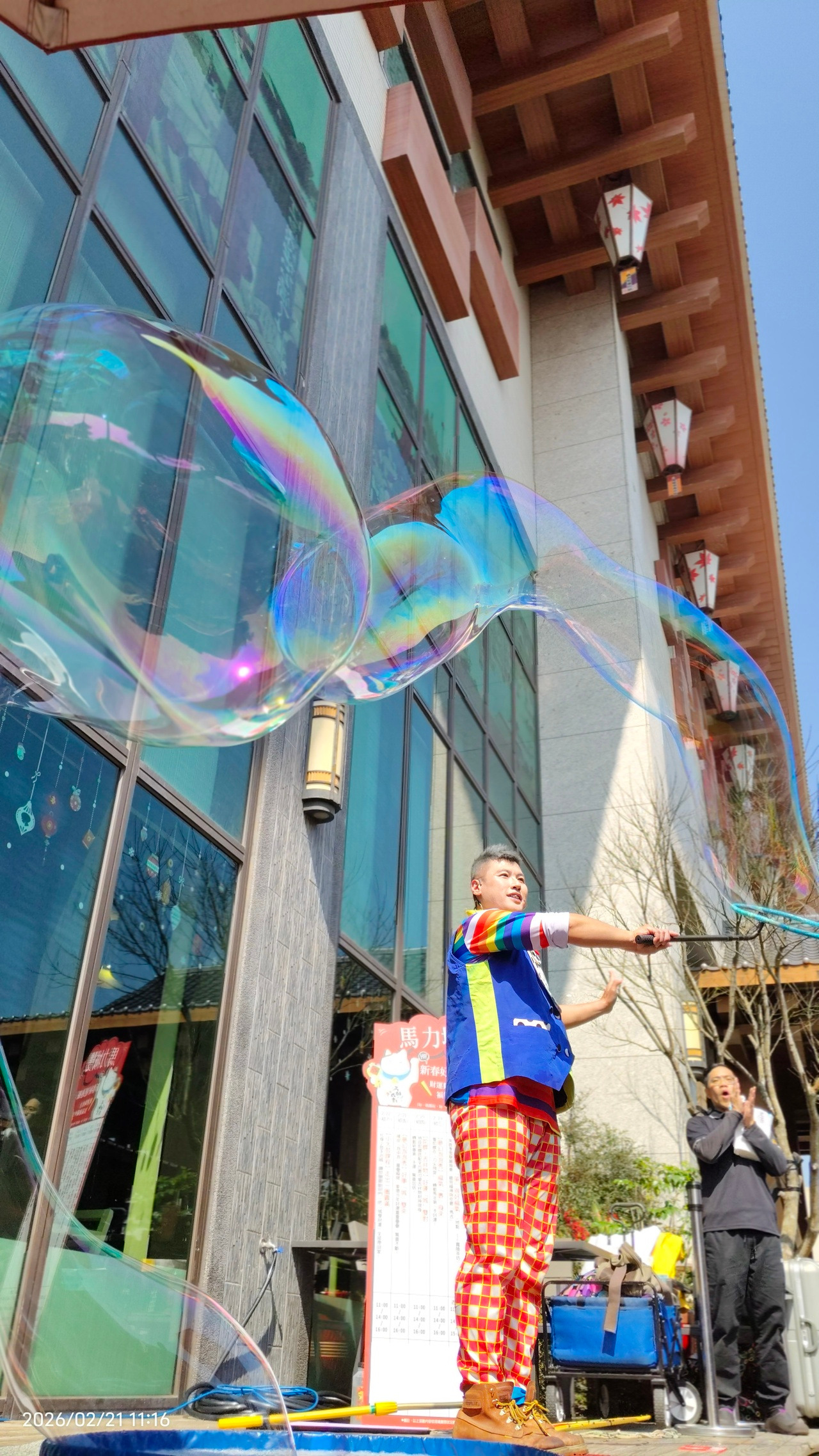 本次演出由專業團隊操刀,憑藉多種特製巨型泡泡與精湛的聲光互動,吸引數千名遊客駐足圍觀。
