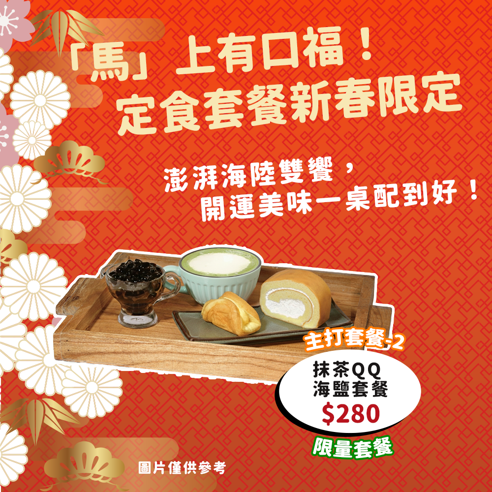 抹茶QQ海鹽套餐 (限量供應) | $280 甜點控與抹茶控集體尖叫!夢幻級組合登場:Q彈珍珠搭上海鹽生乳捲,鹹甜交織、清爽不膩。#限量就是殘酷,手刀預約準沒錯!