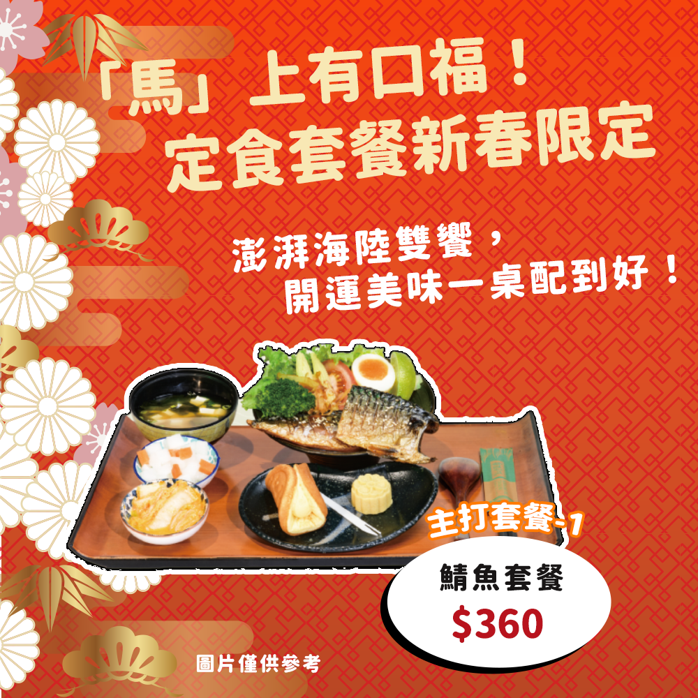 鯖魚套餐 | $360 媽呀~這個烤鯖魚嫩到會噴汁!嚴選肥美鯖魚,外皮烤至金黃酥脆、肉質鮮甜,根本是海洋的禮物!搭配精緻和風小菜,瞬間昇華您的味蕾。