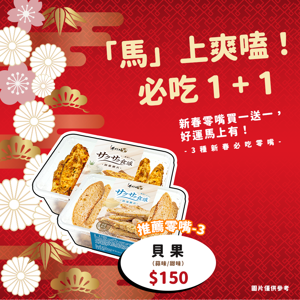 貝果餅乾 ($150/組):蒜味、甜味任選,香脆到讓耳朵懷孕!喀滋喀滋好運到,年節最強嘴饞救星。