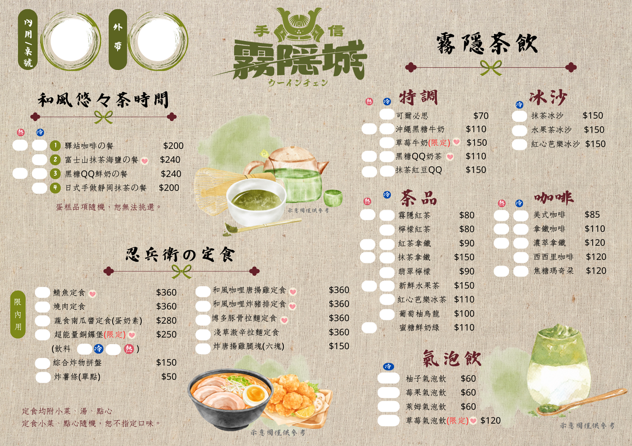 更新日期:2025/08/25 菜色內容依季節時令調整,實際菜色依現場供應為主。 每日最後點餐時間為下午16:20止。